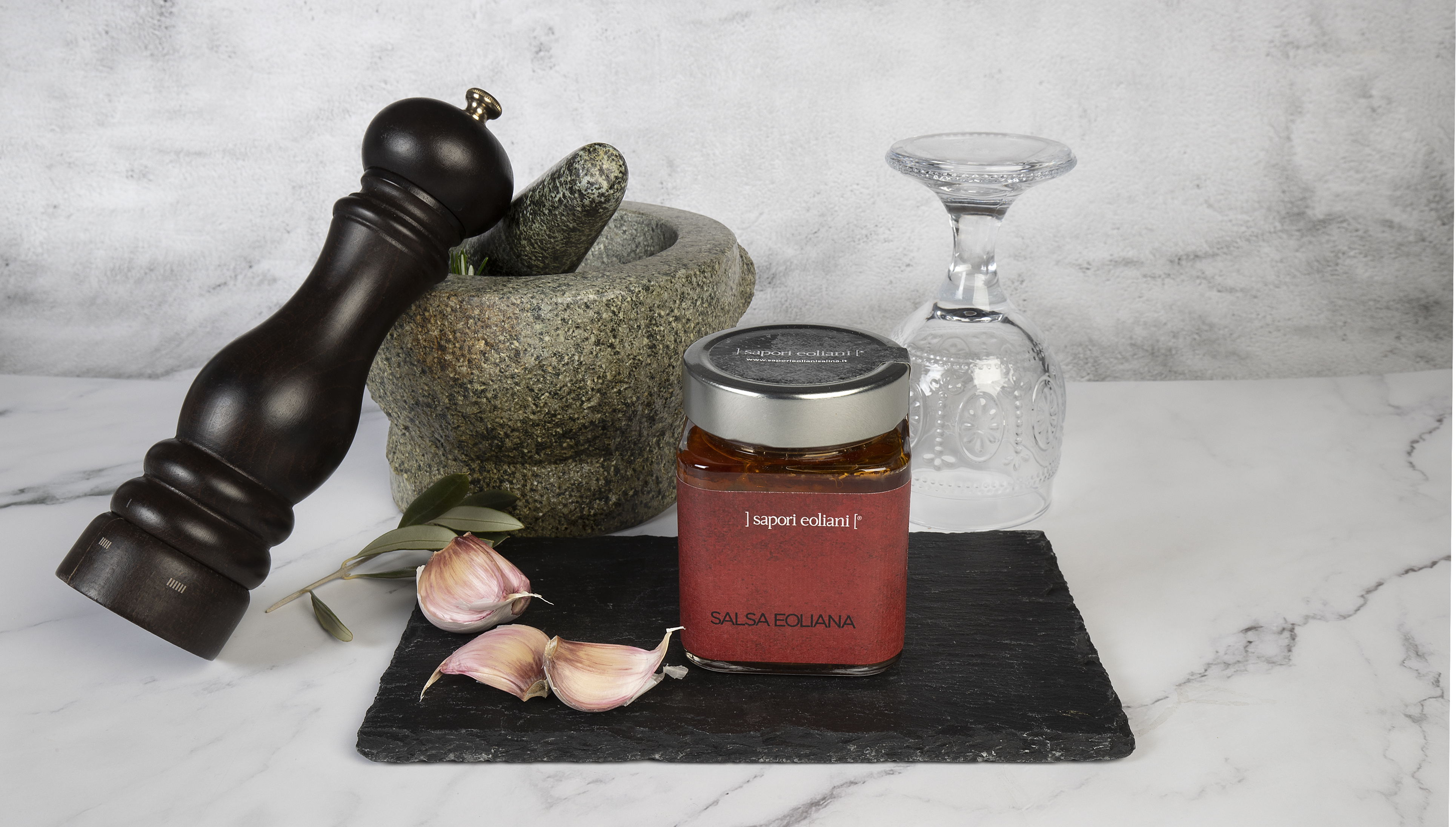 Die „Äolische Sauce“ mit Salina-Kapern wird von der Firma „Sapori Eoliani“ auf der Insel Salina hergestellt. Es ist eine typische Sauce der traditionellen Salzküche, die auf frischen und echten Zutaten basiert: Tomatenmark, entsalzte Kapern, Olivenöl extra vergine, Knoblauch, Chili, Salz, Zucker und Petersilie. Diese Ingredienzien machen jedes Gericht unverkennbar, intensiv und lassen Noten von Baum, Holz und Gemüse in die Nase steigen, mit denen Sie in kürzester Zeit außergewöhnliche Gerichte zubereiten können, die voller Farben und Gerüche sind und selbst die anspruchsvollsten Gaumen begeistern. Die Salsa eoliana ist eine ausgezeichnete Sauce für Nudel-Gerichte. Es reicht aus, die Nudeln zu kochen und mit der Sauce in die Pfanne zu werfen, damit sie alle Gerüche und Aromen aufnehmen. Es ist das perfekte Gewürz für Kapernliebhaber, die seinen Geschmack mit jeder Gabel schmecken können.
