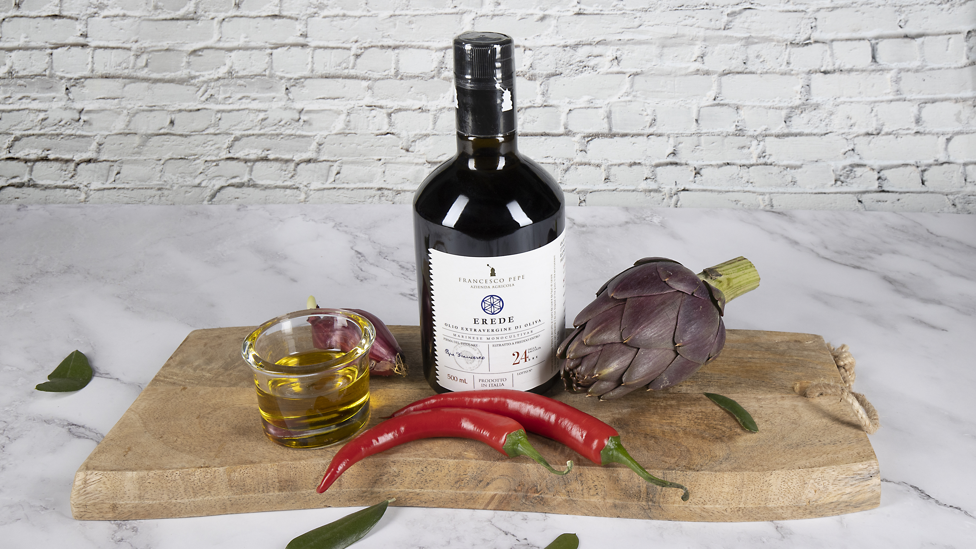 Das Öl EVO Erede ist ein reinsortiges Öl, das aus den typischen Marinese-Oliven der Region Avellino hergestellt wird. Die besten Oliven aus einer nicht-intensiven Landwirtschaft, werden mit Respekt vor der Tradition und Leidenschaft für die Herstellung dieses unglaublich gesunden und unverfälschten Öls verarbeitet. Es handelt sich um ein Slow Food-Presidio aus Kampanien. Der unverwechselbare Duft und Geschmack erinnert an die aromatischen Kräuter Salbei, Oregano und Rosmarin.