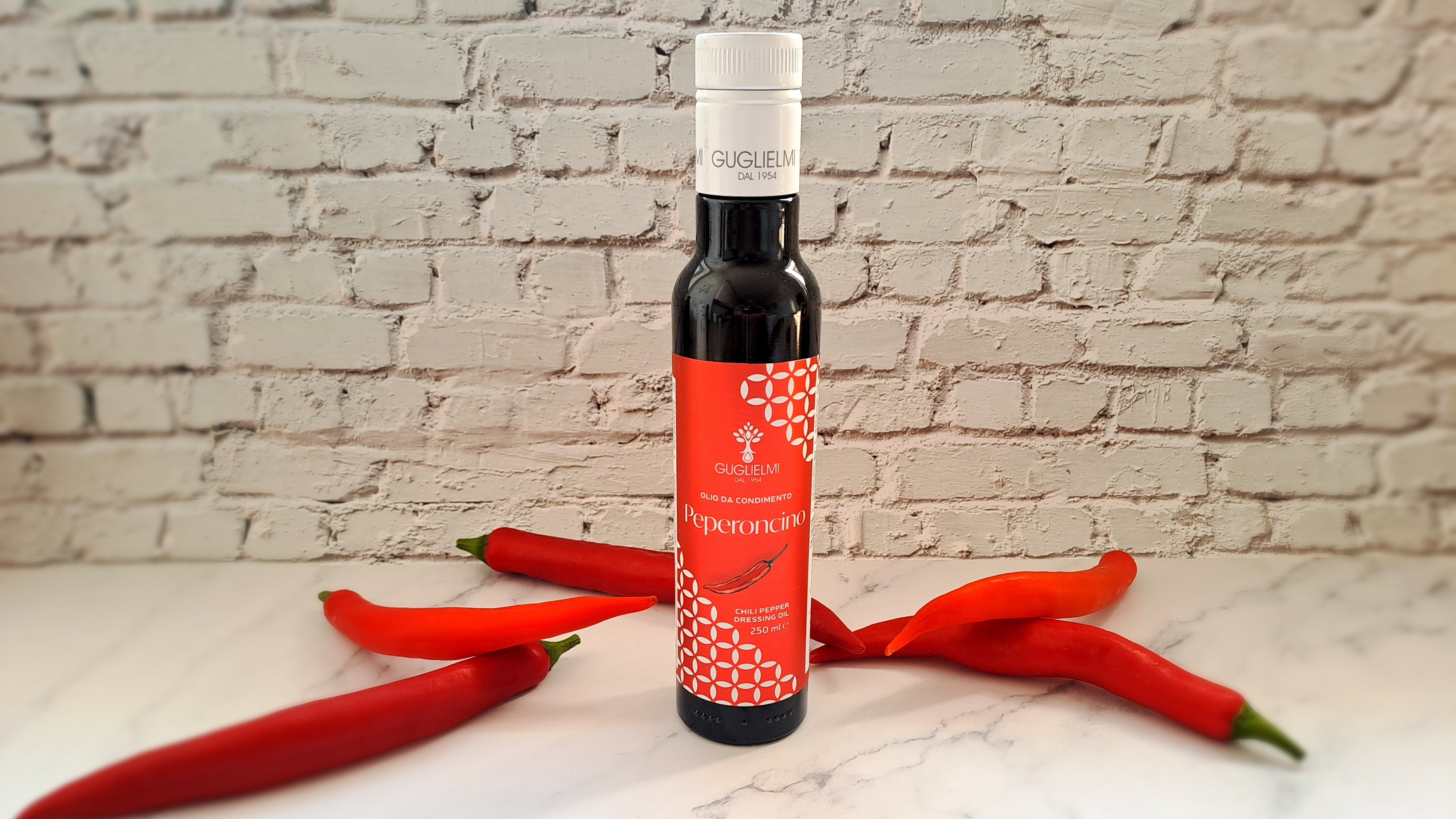 Das native Olivenöl Peperoncino wird durch die gleichzeitige Pressung von Oliven und roten Chilischoten gewonnen. Sein typisch mediterraner Geschmack und sein Aroma charakterisieren dieses Gewürz mit tausend Verwendungsmöglichkeiten für Liebhaber würziger Speisen. Es ist eine unverzichtbare Grundlage für die Zubereitung von individuellen Gerichten wie Spaghetti aglio olio e peperoncino, die ideale Zutat für erste Gänge, Gemüsesuppen, Pizzen, Fleisch- und Käsegerichte und überall dort, wo der scharfe und ausgeprägte Geschmack von Chilischoten gewünscht wird
