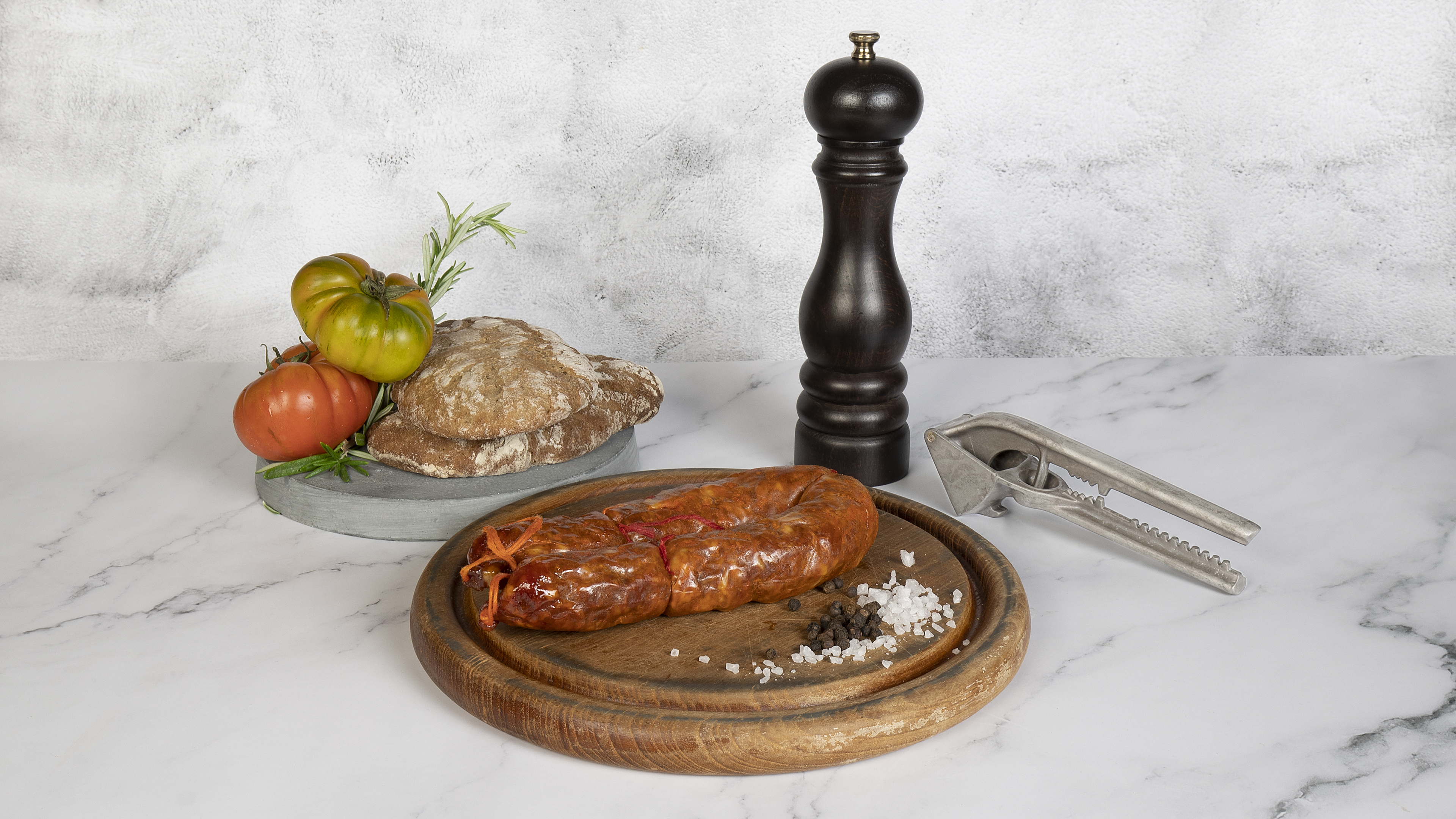 Die „Salsiccia dolce“ (dt. süße Wurst) von Casabona Santa Barbara wird aus Schultern und Speck, Salz und wildem Fenchel hergestellt, in Naturdärme gefüllt, von Hand gebunden und 40 Tage lang natürlich getrocknet. In der kleinen handwerklichen Manufaktur von Camillo Palmieri werden die Schweine, die im Durchschnitt 12 Monate alt sind und ein Gewicht von 240kg erreichen, sorgfältig ausgewählt und ausschließlich in freier Wildbahn mit einer gesunden Ernährung aufgezogen.