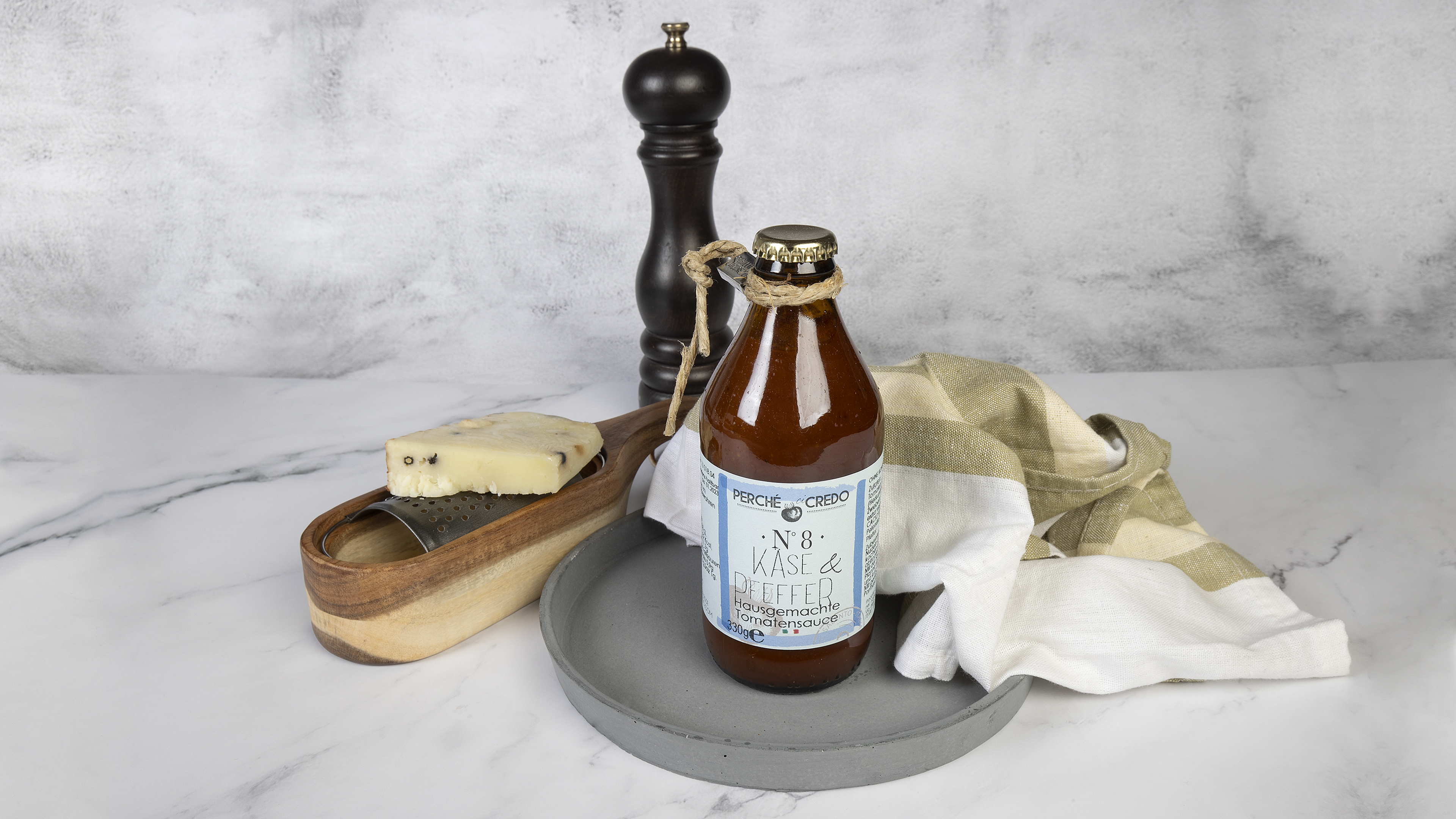 Aus der Speisekammer von einst. Gebrauchsfertig: öffnen und über die Nudeln gießen! Die Casareccia Cacio & Pepe Sauce ist inspiriert von dem wunderbaren römischen Rezept, einfach und lecker. Eine leicht gebratene Zwiebel und die Umarmung von Tomatenmark, gut und vollmundig, schließlich ein Bad mit Cacio-Käse und schwarzem Pfeffer. Eine Prise Petersilie am Ende des Garvorgangs. Die Saucen von Perchè ci credo werden mit Leidenschaft und Liebe gekocht, wie es unsere Großmütter ohne Zucker- oder Tomatenmarkzusatz tun würden.Nach dem Öffnen gekühlt aufbewahren und als frisches Produkt behandeln.